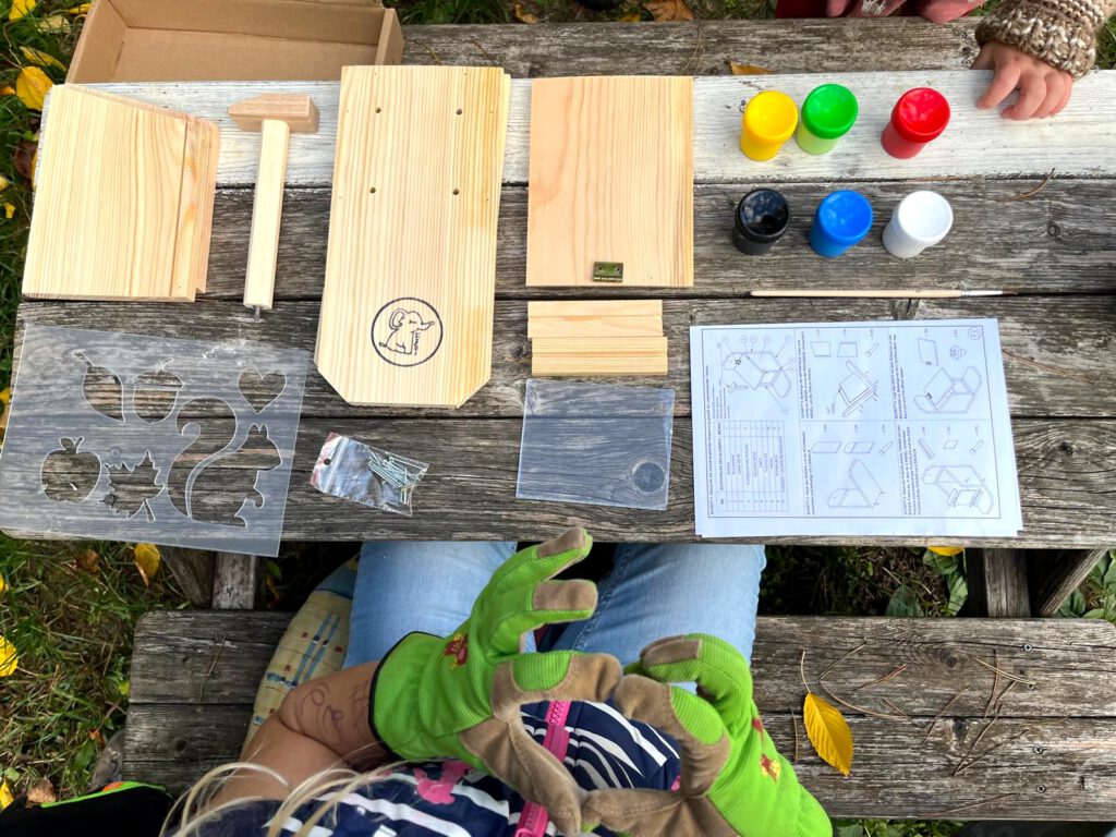 Das Paket von Eli der Elefant zum Selbstbauen eines Eichhörnchen Futterhauses kam mit allem, was dieses Projekt nötig machte: Sorgfältig vorbereitete Holzteile, Nägel, Hammer, Pinsel und Farbe. Natürlich ist auch eine Anleitung enthalten, die Schritt für Schritt den Aufbau erklärt. Doch sieh selbst: