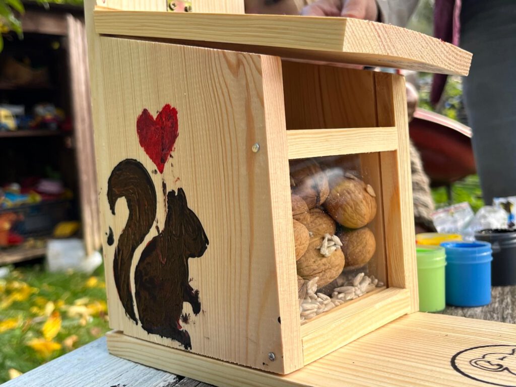 Jetzt im Herbst ist es natürlich die beste Gelegenheit zwischen den bunten Blättern und kahl werdenden Bäumen die flauschigen Eichhörnchen bei der Futtersuche zu beobachten. Umso mehr haben wir uns gefreut, als wir die Anfrage erhielten, ein Eichhörnchen- Futterhaus zu bauen. Natürlich haben wir direkt zugestimmt!